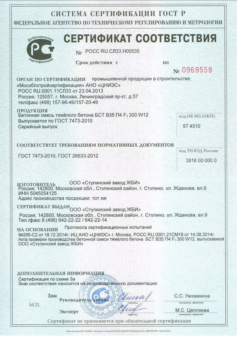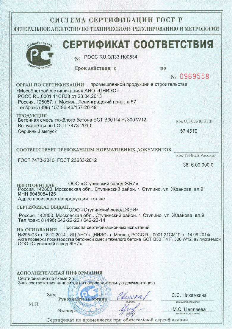Ступинский завод ЖБИ предлагает своим клиентам высококачественный бетон по доступным ценам. мы отвечаем за качество производимого бетона, так как предоставляем сертификаты соответствия продукции необходимым ГОСТам. А оперативная доставка бетона нашим транспортом поможет вам вовремя начать необходимые работы.